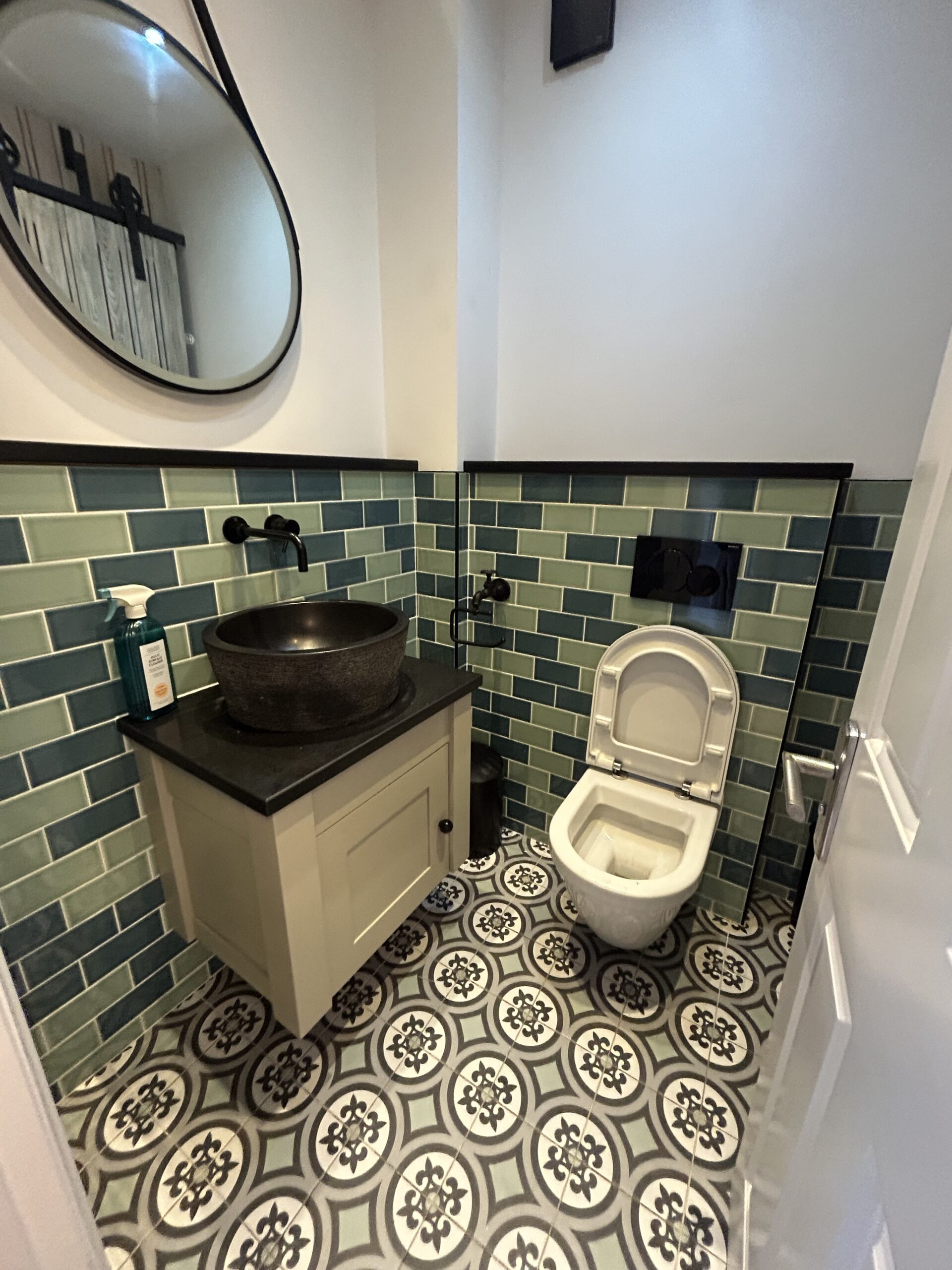 Parking for 2 cars + a garage, decking and garden. This house is charming with modern appliances, state of the art bathrooms and underfloor heating.